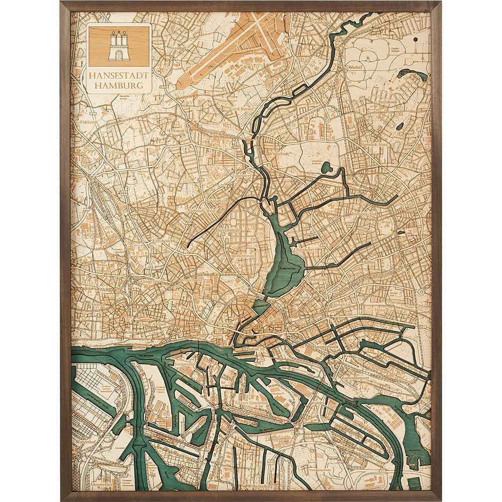 Die Hansestadt als beeindruckende Wandkarte. Handgefertigt aus nachhaltigem Holz, fängt sie die Magie der norddeutschen Metropole perfekt ein.