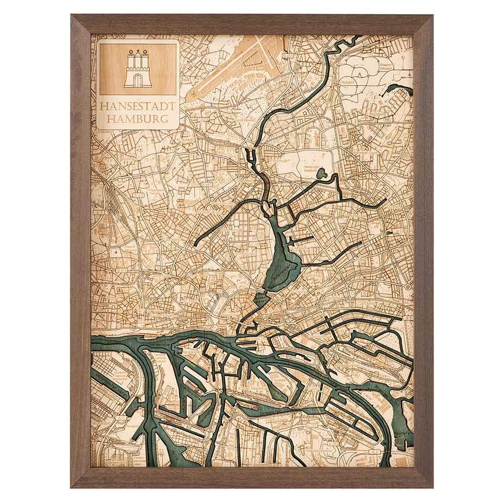 Hamburg 3D Holz Wandkarte - Version S