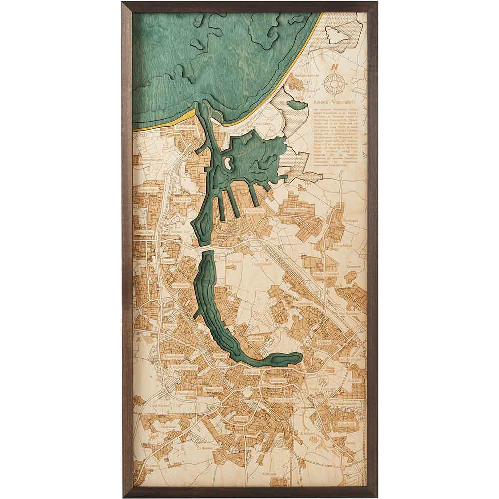 Rostock 3D Holz Wandkarte - Version M