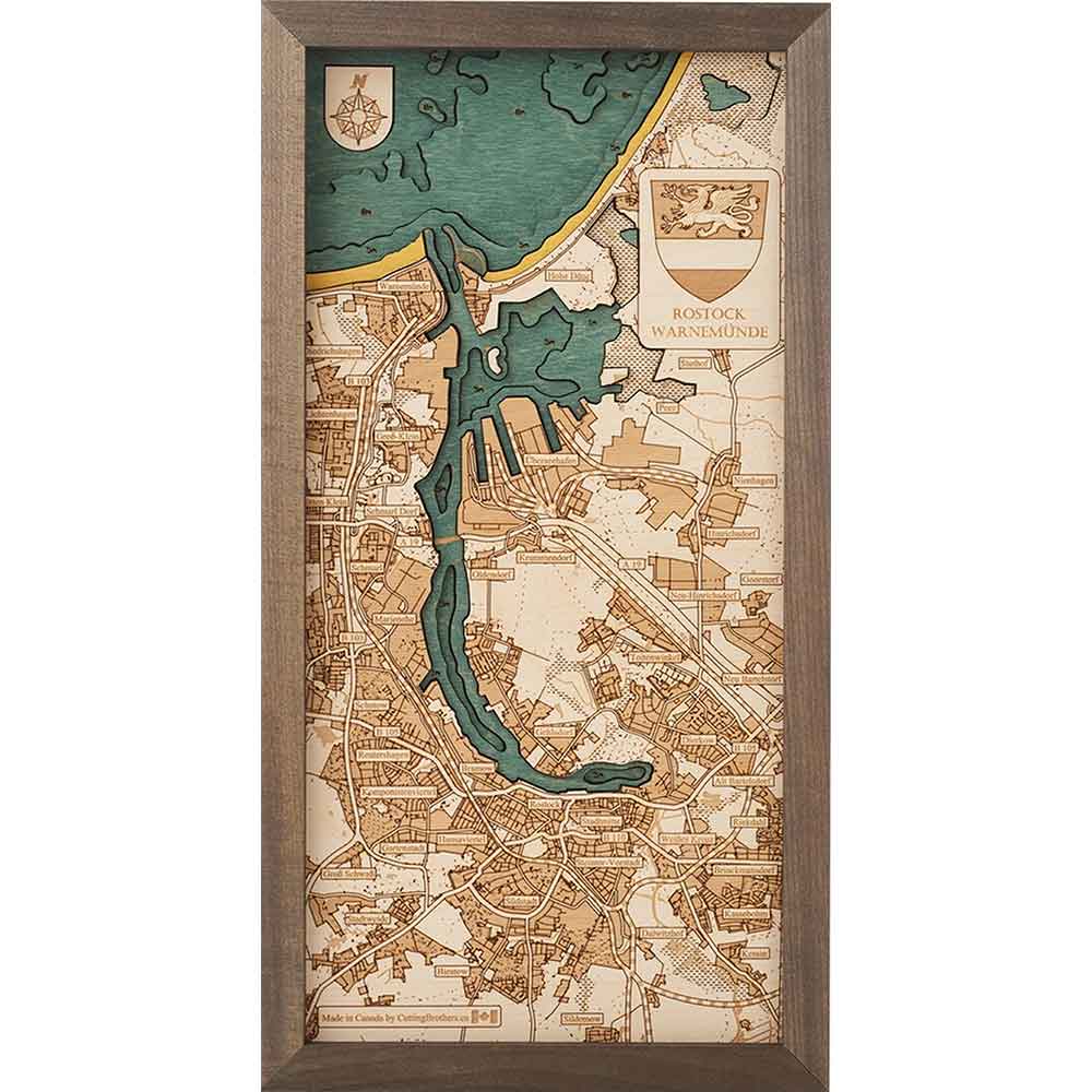Die Hansestadt an der Ostsee als beeindruckende Wandkarte. Handgefertigt aus nachhaltigem Holz, fängt sie die Magie der mecklenburgischen Metropole perfekt ein.