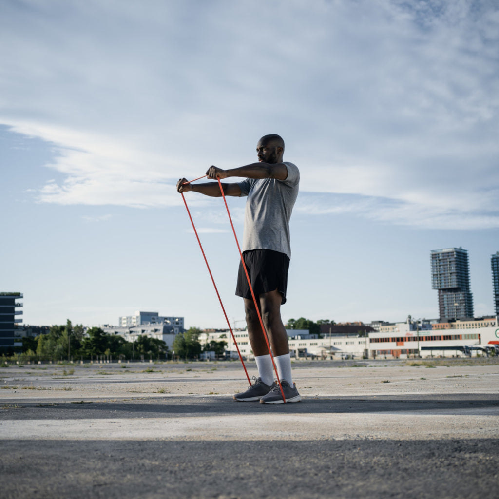 Bleibe in deiner Fitness Routine und trainiere überall und jederzeit. Das einzige was du brauchst, ist dein Band und die App.