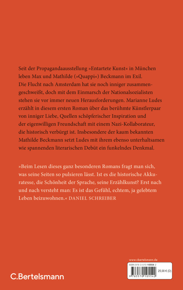 Amsterdam, 1942: Schon fünf Jahre, seit der Propagandaausstellung »Entartete Kunst« in München, leben Max Beckmann und seine Frau Mathilde, genannt Quappi, im Exil. Bei Treffen mit Freunden und Ausflügen ans Meer versucht das Paar zu vergessen, dass ihnen Holland seit dem Einmarsch der Deutschen kaum noch Ruhe und Auskommen bietet. Besonders Max setzen die ständige Unsicherheit und Beschneidung der persönlichen Freiheit zu, doch Quappis Zuversicht und Organisationstalent ermöglichen weiterhin sein Schaffen. Unterstützung erfährt Max auch durch die Bekanntschaft mit einem mysteriösen Deutschen, dem Kunsthistoriker Erhard Göpel, der für die »Sonderkommission Linz« tätig ist. Er soll Bilder für ein von Hitler geplantes Kunstmuseum zusammentragen. Göpel ist glühender Verehrer Beckmanns und zu jeder, selbst illegaler Hilfeleistung bereit. Kann das Ehepaar einem Nationalsozialisten trauen? Während sich Göpel immer häufiger mit den Machtinstrumenten der Nazidiktatur konfrontiert sieht, wächst die Bedrohung für die Beckmanns und ihre jüdischen Freunde.Kundig, unterhaltsam und spannend erzählt Marianne Ludes aus dem Leben des berühmten Künstlerpaars: von inniger Liebe, Quellen schöpferischer Inspiration und einer eigenwilligen Freundschaft, die historisch verbürgt ist. Ludes hatte exklusiven Zugriff auf die bislang unveröffentlichten Tagebücher Mathilde Beckmanns und zeichnet das lebendige Porträt einer klugen, tatkräftigen Frau unserer Zeit.