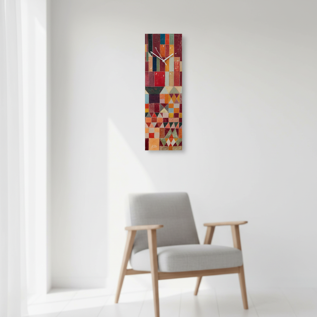 Diese kunstvolle Wanduhr bringt die farbenfrohe Welt Paul Klees in Ihr Zuhause. Das Motiv „Burg und Sonne“ aus dem Jahr 1928 zeigt die charakteristische Verbindung von geometrischer Klarheit und poetischer Farbkomposition. Die Uhr vereint Funktionalität mit künstlerischem Ausdruck – ein stilvolles Statement für alle, die Kunst auch im Alltag schätzen. Ob im Wohnzimmer, Büro oder Atelier: Diese Uhr setzt einen inspirierenden Akzent