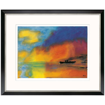 Emil Nolde: Bild "Meer mit zwei kleinen Dampfern (rot, blau und grün)", Version schwarz-silber gerahmt
