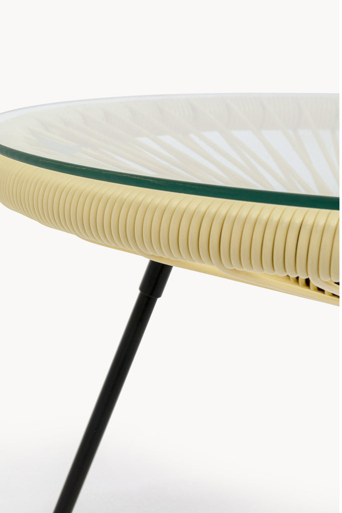 Verleihen Sie Ihrem Innen- und Außenbereich ein schnelles und unkompliziertes Stil-Upgrade mit diesem kleinen, runden Tisch, der sich sein Design bei den berühmten mexikanischen Acapulco-Stühlen abgeschaut hat. Dieser junge Klassiker eignet sich perfekt für vielfältige Einsatzzwecke: als leichter Couchtisch neben dem Sofa, im Schlafzimmer neben dem Bett und natürlich überall draußen an der frischen Luft. Am liebsten zusammen mit einem Acapulco-Sessel!
