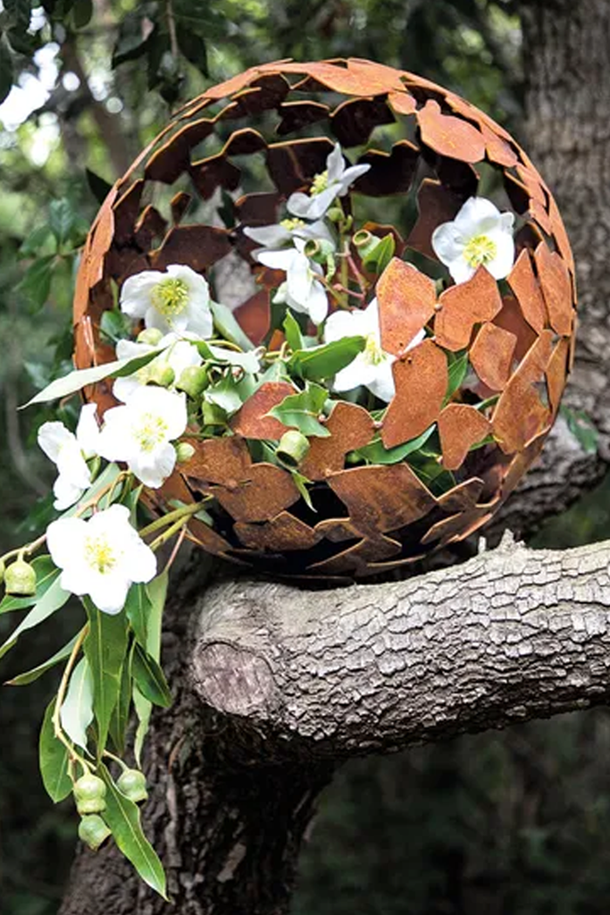 Gefertigt aus robustem Metall mit authentischer Rostpatina überzeugt das Pflanzgefäß nicht nur durch seine ausdrucksstarke Optik, sondern auch durch seine Widerstandsfähigkeit. Die natürliche Edelrost-Oberfläche entwickelt im Laufe der Zeit eine individuelle Patina, die jedes Stück zu einem Unikat macht und perfekt mit Grünpflanzen, Gräsern oder saisonalen Arrangements harmoniert. Ob modern, puristisch oder naturnah gestaltet – die Gartenkugel fügt sich mühelos in unterschiedliche Gartenkonzepte ein und wird garantiert zum Blickfang.