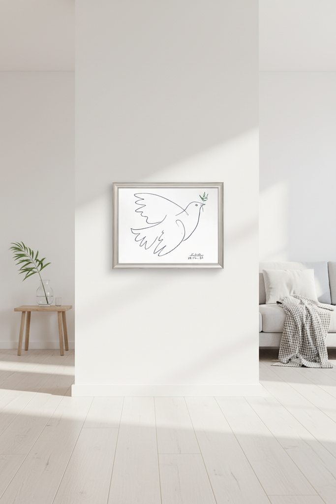 Mit seiner berühmten Friedenstaube schuf Pablo Picasso ein zeitloses Symbol der Hoffnung und Menschlichkeit. Diese hochwertige Reproduktion bringt die Botschaft des Friedens in Ihr Zuhause. Das Motiv entstand 1961 als Plakat für den internationalen Friedenskongress in Stockholm und gilt bis heute als eines der bekanntesten Werke des 20. Jahrhunderts. Die detailgetreue Reproduktion zeigt die klare Linienführung und Ausdruckskraft des Originals. Gerahmt und verglast präsentiert sich das Werk als eindrucksvolles Kunstobjekt für Wohn- oder Arbeitsräume. PABLO PICASSO - COLOMBE BLEUE - 1961 - GALERIE L'ART ET LA PAIX, droits réservés, imprimés spécialement pour le compte de - Migneco&Smith® - 60821.