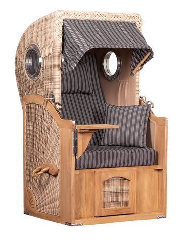 Strandkorb 1-Sitzer, Design grau gestreift