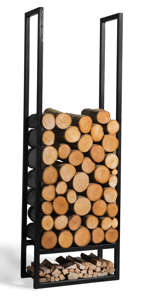 Dieses schlanke Regal aus hochwertigem, pulverbeschichtetem Stahl bietet die perfekte Lösung für alle, die Wert auf praktische Lagerung und ansprechendes Design legen. Die clevere vertikale Bauweise spart wertvollen Platz und setzt Ihr Feuerholz dekorativ in Szene – ob neben dem gemütlichen Kamin im Wohnzimmer oder als praktische Ergänzung zu Ihrer Feuerschale im Garten.