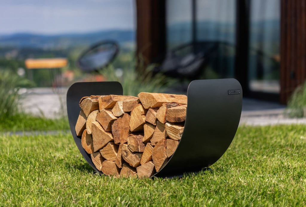 Dieses robuste Regal aus hochwertigem, schwarzem Stahl überzeugt durch seine außergewöhnliche Standfestigkeit und großzügige Lagerkapazität. Mit seinen kompakten Abmessungen fügt es sich harmonisch in jeden Außenbereich ein und verwandelt Ihr Brennholz in einen ordentlichen, dekorativen Blickfang neben Feuerschale, Gartenofen oder Kamin.
