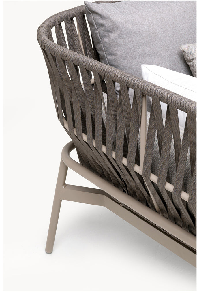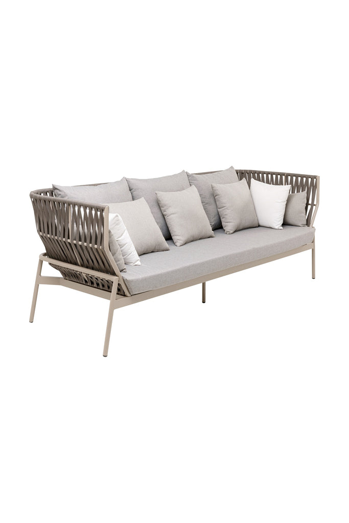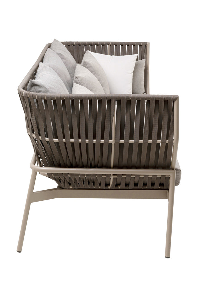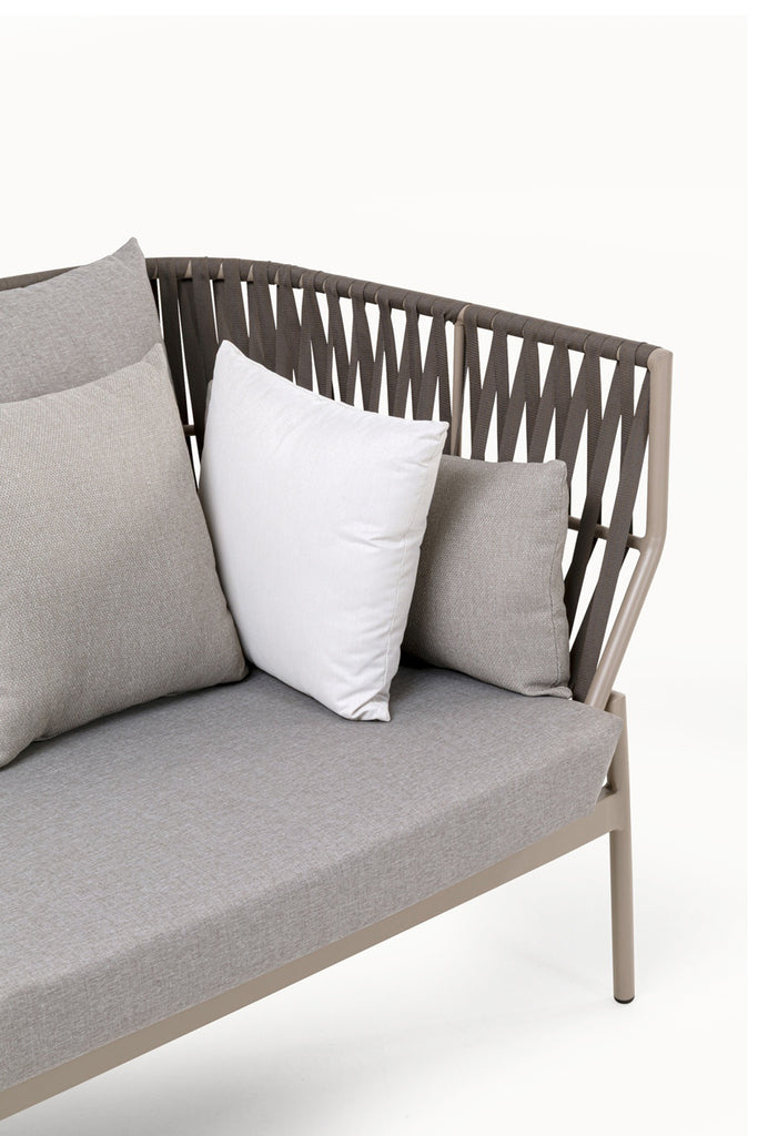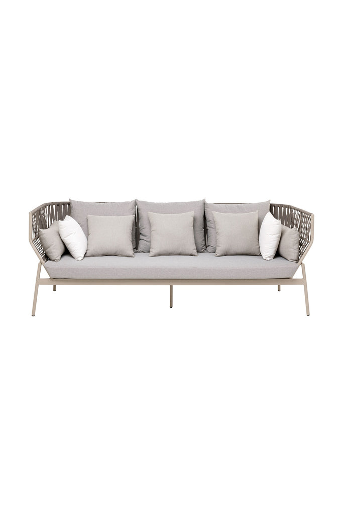 Das pflegeleichte Geflecht aus Polypropylen überzeugt durch seine strapazierfähigen Eigenschaften, während großzügige Sitz- und Rückenpolster für entspannten Komfort sorgen. Ein robustes, pulverbeschichtetes Aluminiumgestell verleiht dem Sofa Stabilität und Langlebigkeit – ideal für stilvolle Outdoor-Arrangements mit Designanspruch und maximaler Funktionalität.