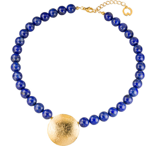 Als Abbild des Sonnengottes RA ist die Sonne ein Leben spendendes Symbol, das im Alten Ägypten noch der königlichen Familie vorbehalten war. An diesem Collier von Petra Waszak aus Lapislazuli- Perlen strahlt die Sonne in Form eines Anhängers und ist in jeder Hinsicht ein außergewöhnlicher Halsschmuck: ein ideales Präsent für jede kunst- und kulturbegeisterte Frau!