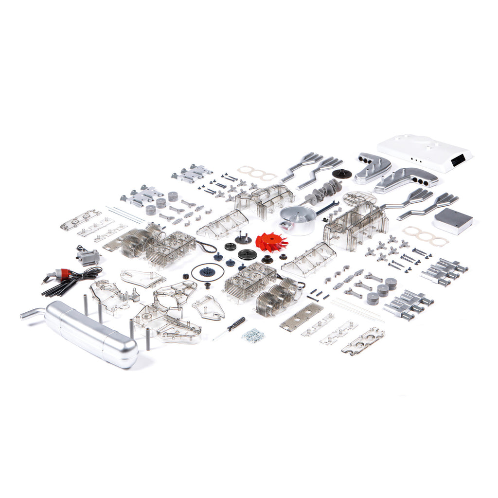 Der Porsche-Boxermotor ist einzigartig, und die Fahrzeuge, die er antreibt, sind legendär. Mit diesem hochwertigen Bausatz erleben Sie Technikfaszination vom Feinsten: In rund drei Stunden entsteht ein originalgetreues transparentes Funktionsmodell des 2-Liter-6-Zylinder-Boxermotors aus dem Ur-911er. Über 200 präzise gefertigte Teile werden gesteckt und geschraubt – ganz ohne Kleben.