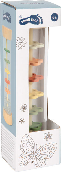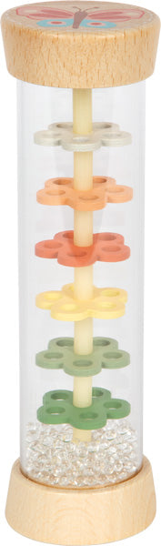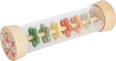 So klingt der Regen im Frühling! Dieser Regenmacher vereint sanfte Geräusche mit liebevoll gestaltetem Design – und wird so zum sinnlichen Erlebnis für kleine Entdecker. Ob als beruhigendes Klangspielzeug, erstes Rhythmusinstrument oder farbenfrohes Rasselspielzeug: Der transparente Kunststoffkolben gibt den Blick frei auf glitzernde Kügelchen, die durch bunte Lochplatten in Blümchenform rieseln. Ein faszinierendes Spiel für Augen und Ohren, das Babys und Kleinkinder gleichermaßen begeistert! Der Regenmacher Kleine Freunde bringt die Magie von Regentropfen direkt ins Kinderzimmer – visuell wie akustisch! Die kleinen Kügelchen im Inneren des Regenstabs erzeugen beim Rieseln durch sechs farbenfrohe Lochplatten in Blumenform ein angenehmes, sanftes Prasseln, das an fallenden Regen erinnert. Gleichzeitig ist der Regenmacher ein wahres Multitalent: Als Klangspielzeug, Rassel, Rhythmusinstrument oder beruhigendes Sinnesspiel begleitet er Babys und Kleinkinder in verschiedensten Spielmomenten. Dank der transparenten Röhre beobachten Kinder fasziniert das Spiel der glitzernden Kügelchen – das trainiert gezielt die visuelle Wahrnehmung. Das gleichmäßige Rieseln der Kügelchen wirkt beruhigend, fördert das Hörverständnis und lädt zum Entspannen, Lauschen und Nachahmen ein. Auch zum Rollen und Rasseln für die Kleinsten geeignet!