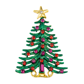 Festlich mit Kristallen verziert, verbreitet diese Brosche aus 24-karätig vergoldetem Zinn dezent Weihnachtsstimmung. Mit Sicherheitsverschluss. Format 6 x 3 cm (H/B).