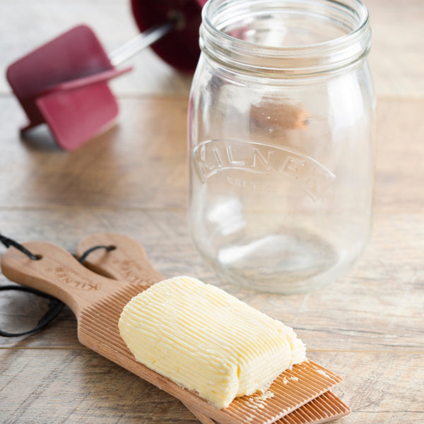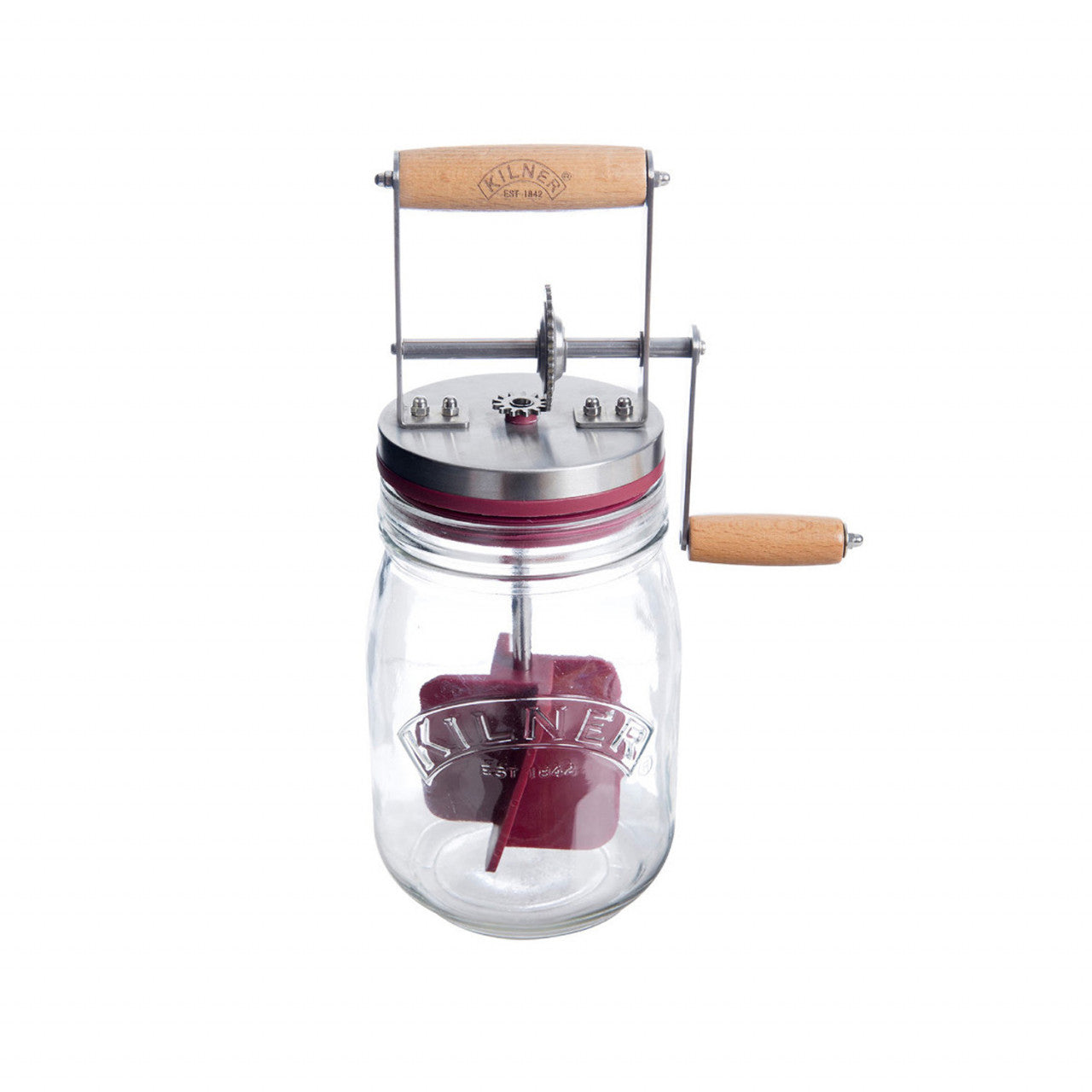 Der Kilner Butter Churner bietet eine einfache Möglichkeit Butter selbst herzustellen und ist gleichzeitig eine stilvolle Ergänzung für Ihre Küche. Einfach Sahne in den Butterwender geben, den Griff drehen und in weniger als zehn Minuten genießen Sie selbstgemachte, frische und besonders lecker schmeckende Butter! Im Lieferumfang enthalten sind eine leicht verständliche Schritt-für-Schritt-Anleitung sowie eine Auswahl der Rezepte. Perfekt auch für Kräuter-, Knoblauchbutter und mehr.