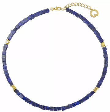 Ein prachtvolles Collier mit auffälligen Schmuckelementen aus dunkelblauem Jaspis, die ein effektvolles Marmor-Dekor zieren.