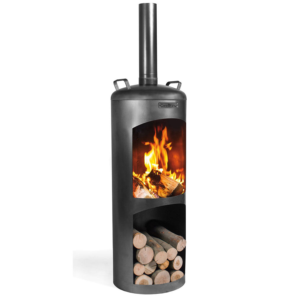 Gefertigt aus robustem, schwarzem Stahl, überzeugt der Gartenofen durch Langlebigkeit, Witterungsbeständigkeit und sichere Standfestigkeit. Mit seinen kompakten Maßen von 40 x 40 x 158 cm (BxTxH) und einem Gewicht von 19 kg lässt er sich flexibel und stabil auf Ihrer Terrasse oder im Garten platzieren.