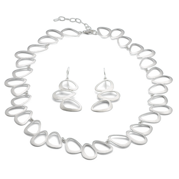 Judith Martini: Collier „Petit Bijou“ – eine Silberkette mit verbundenen, unregelmäßig ovalen Schlaufen, die in einem durchgehenden Muster auf weißem Hintergrund angeordnet sind.