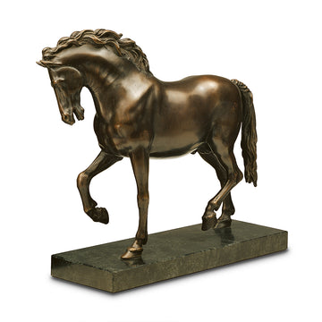 Dieses kleine, anatomisch vollendete Bronzemodell eines schreitenden Hengstes schenkte Leonardo da Vinci der Bianca Maria Sforza zu deren Verlobung mit Kaiser Maximilian I. Original: Staatliche Museen zu Berlin - Stiftung Preußischer Kulturbesitz (gilt seit 1945 als verschollen). Mailand um 1492.