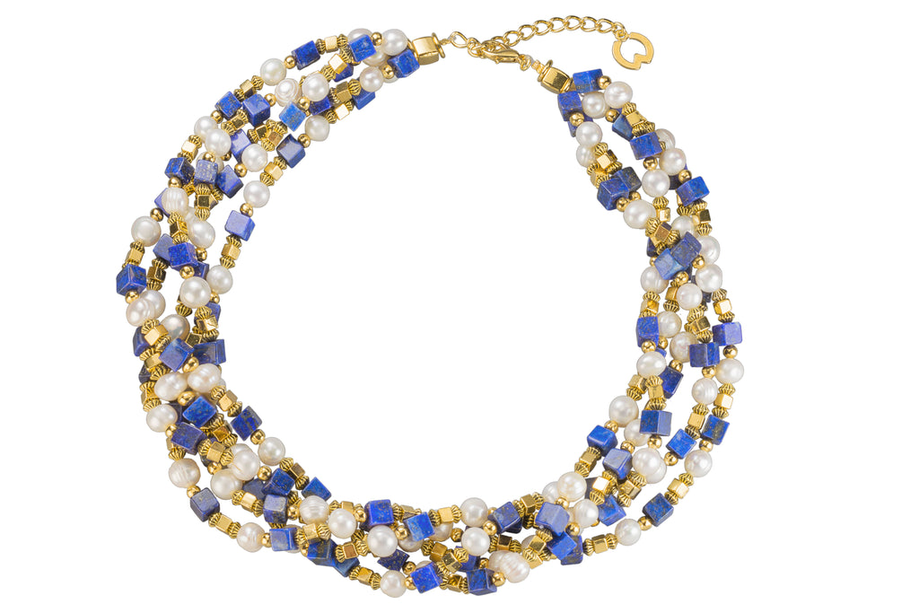 - Material: Lapislazuli, echten Zuchtperlen, 24 Karat vergoldeter Messing
