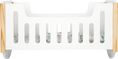 Sanft wiegen und wohlig schlafen! Diese moderne Puppengitterwiege aus Holz im skandinavisch-gradlinigen Design ist die perfekte Wiege, um Puppen und Plüschtiere sanft in den Schlaf zu wiegen. Die genderneutrale Wendebettwäsche mit der übergroßen Bettdecke bietet Puppen und Plüschtieren bis 46 cm Größe einen gemütlichen Schlafplatz. Dank der dezenten Gestaltung in neutralem Weiß und naturbelassenem Holz fügt sich die stabile Wiege harmonisch in jede Wohn- oder Kinderzimmereinrichtung ein. Die hochwertige Verarbeitung und abgerundeten Kanten machen die Puppenwiege zu einer stilvollen Ergänzung fürs Puppenspiel. Beim Spielen wird das Rollenspiel angeregt, wodurch Kinder ihre sozialen Kompetenzen spielerisch entwickeln und stärken können. Ein ideales Spielzeug, das Fantasie und soziale Interaktion fördert.