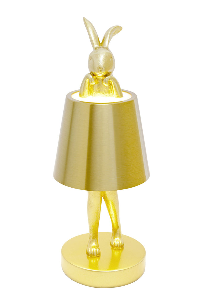 Diese Tischleuchte verleiht Innen- wie Außenbereichen ein atmosphärisches Ambiente mit besonderem Charakter. Das Hasen-Design ganz in Gold setzt einen charmanten Akzent und zieht alle Blicke auf sich – beim Dinner unter freiem Himmel als auch im Wohn- oder Schlafzimmer.