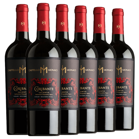 Geschmacksprofil: Im Glas zeigt sich der Coribante in dunklem, violettem Rot. Die Nase entfaltet intensive Aromen von schwarzen Kirschen, Brombeeren und mediterranen Kräutern, begleitet von feinen Pfeffernoten und dezenten Kakao-Anklängen. Am Gaumen präsentiert er sich trocken, vollmundig und weich, mit geschmeidigem Tannin und der charakteristischen aromatischen Tiefe sonnenverwöhnter apulischer Weine.