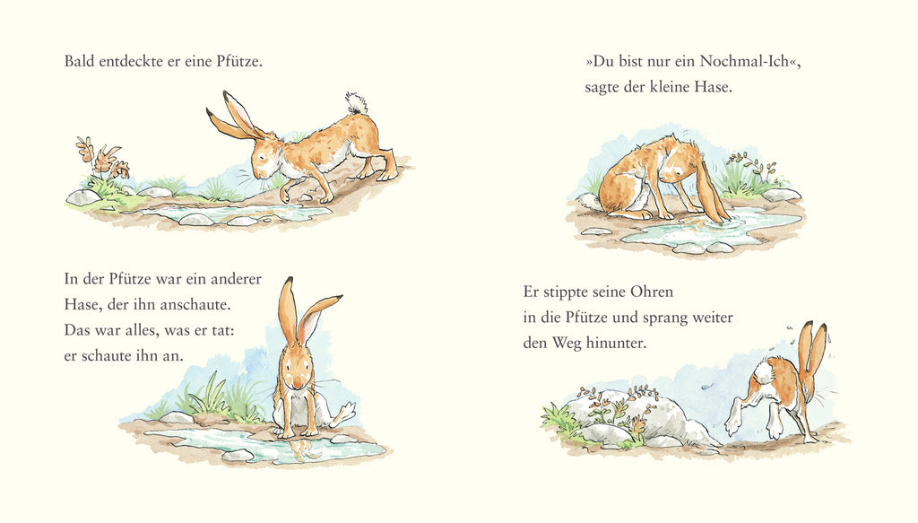 Der kleine Hase aus dem Weltbestseller »Weißt du eigentlich, wie lieb ich dich hab?« findet in der Fortsetzung der berühmten Bilderbuchgeschichte einen Freund. Der kleine Hase spielt ganz allein, denn der große Hase hat heute viel zu tun. In einer Pfütze findet er nur sein Spiegelbild. Doch sich selber zulächeln ist doof. Und mit seinem eigenen Schatten um die Wette laufen, ist langweilig. Aber dann steht plötzlich ein anderer kleiner Hase vor ihm. Und der fragt: »Willst du mein Freund sein?« Natürlich! Denn zusammen um die Wetter rennen, tiefe Löcher graben und Versteck spielen macht noch viel mehr Spaß. Der kleine Hase hat etwas sehr Kostbares gefunden. Einen echten Freund! Eine rührende Geschichte zum Thema Freundschaft. Ein Geschenk für alle, die auch ohne Worte, ihre Zuneigung zu einem anderen Menschen zeigen wollen.