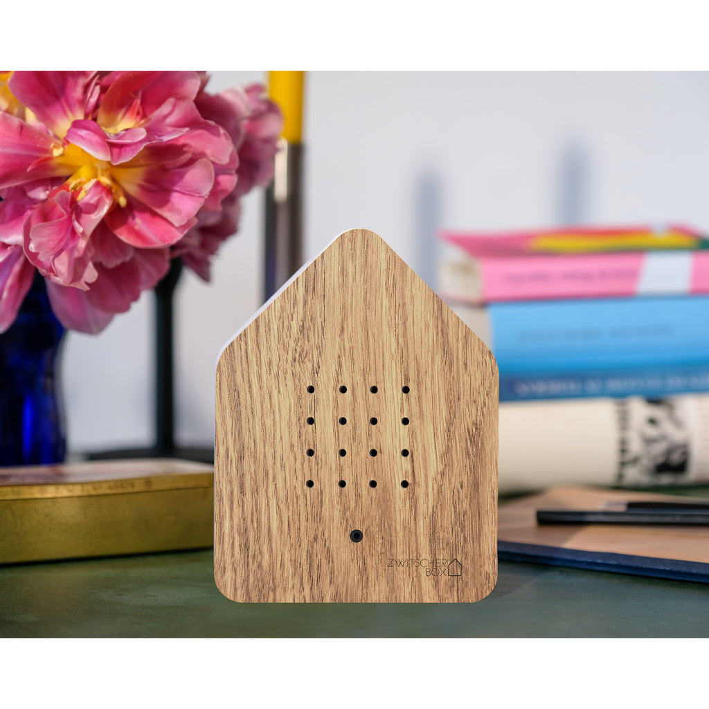 Die Zwitscherbox schenkt uns einen Moment der Ruhe und Entspannung im Alltag. Wie bei einem Waldspaziergang lauschen wir dem erfrischenden Klang der Vögel. Unser Blick wird weich und der Atem tiefer. Unser Geist und Körper entspannt sich unmittelbar.